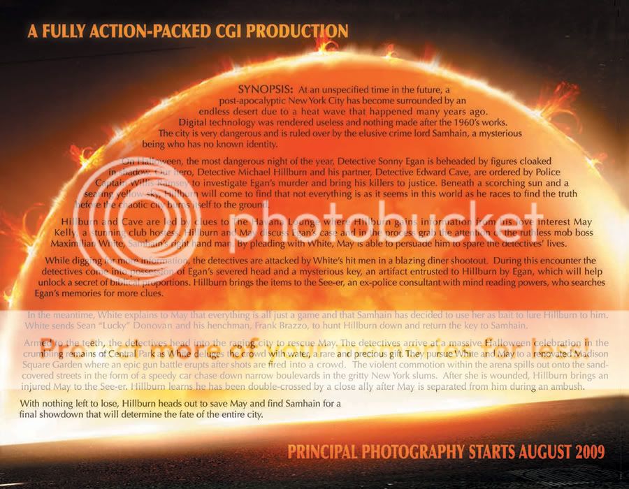 Ovaj projekt je najavljen prije nekoliko dana i u produkciju bi trebao krenuti krajem ove ili početkom sljedeće godine, naime, sve ovisi o tome kako će proći na Cannesu, odnosno, hoće li tamo pronaći distirbutera. Radi se o post-apokalipričnom krimi trileru koji će u potpunosti biti rađen tehnikom green screena, baš kao i "Sky Captain and the World of Tomorrow". Budžet filma bi trebao iznositi skrominh 25 mil.$, a redatelj Philippe Martinez, koji je između ostaloga režirao i jedan od najboljih DTV filmova Jean Calude Van Dammea, "Wake of Death", je za potrebe snimanja ovog filma već uspio okupiti prilično impresivnu glumaku ekipu koju sačinjavaju Ray Stevenson, Jaime King, Stephen Moyer, Robert Duvall and James Caan. Također, za potrebe Cannes festivala napravljen je i promo teaser koji prikazuje kakav bi trebao biti vizualni identitet filma. Upravo iz tog teasera su i preuzete fotografije, no sam teaser na žalost još nije dostupan na internetu, ali nadajmo se da će uskoro biti jer slike izgledaju cool...